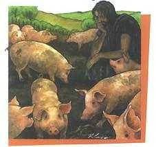 Şi după ce a cheltuit totul , a venit o foamete mare în ţara aceea şi el a început să fie în lipsă. Şi ducându-se , s-a lipit el de unul din locuitorii acelei ţări şi acesta l-a trimis la ţarinile sale să pască porcii . Şi dorea să-şi sature pântecele din roşcovele ce mâncau porcii , însă nimeni nu-i da.